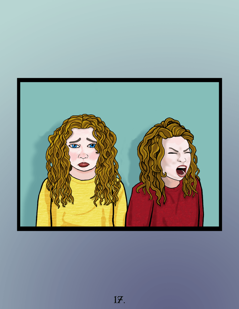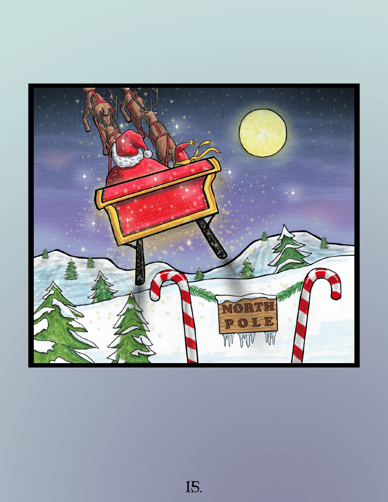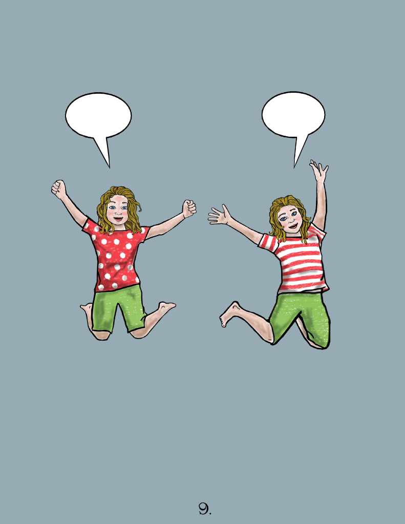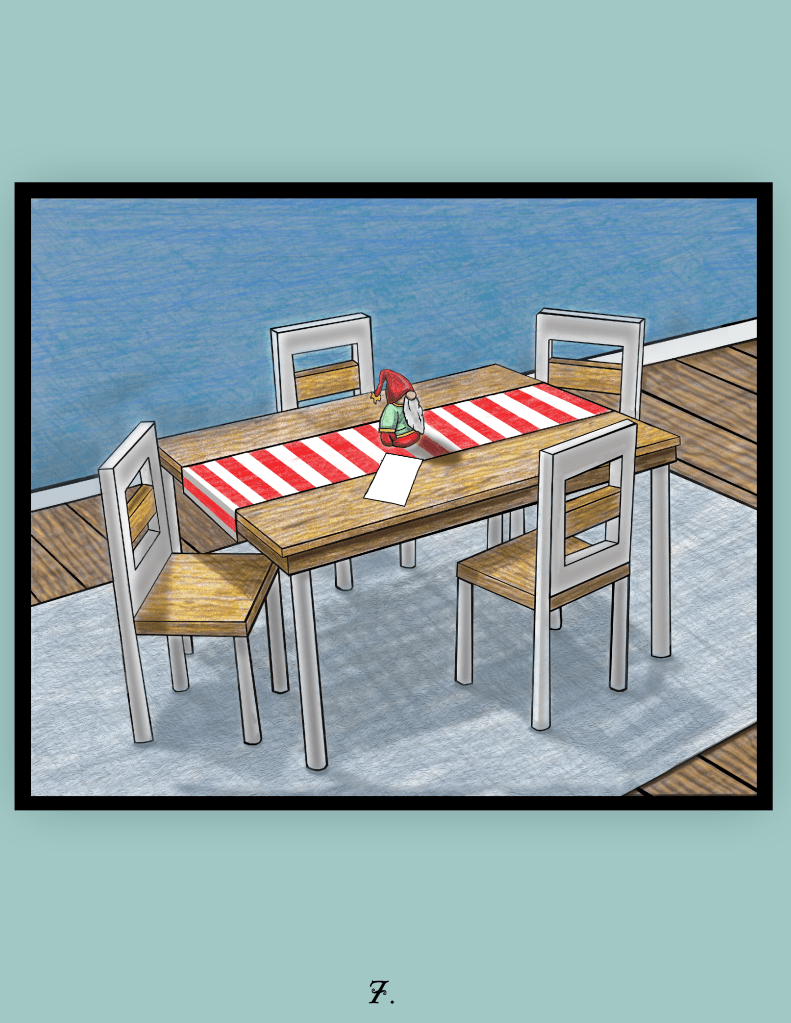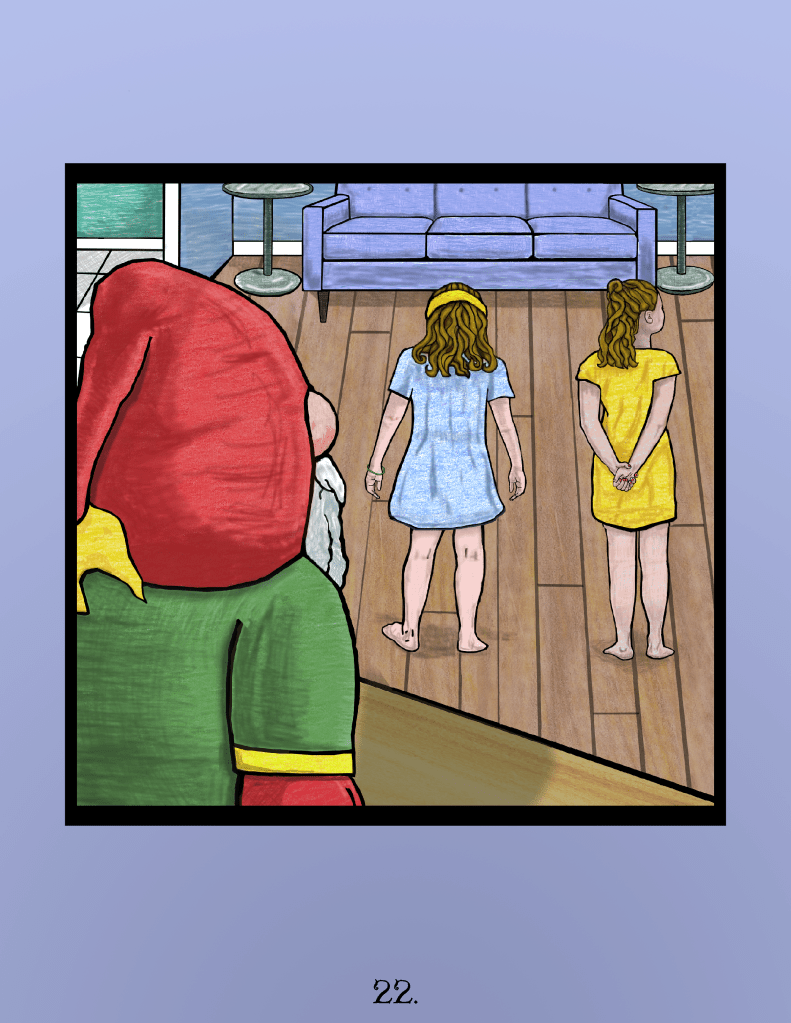 At the proverbial 11th hour, the author and I parted ways and this book never went on to be a tangible thing that would make lots of money for both of us. I have removed or changed all text that is in any way connected to the author and characters (including the book spine, and blanking out drawings of hand-written letters). As such, you’ll have to use your imagination to create the story, based solely on the art. This represents a little over a year of work, and was created primarily in Photoshop. I obsessed over every single page, constantly reshaping a line, recoloring something, playing around with perspective, etc.